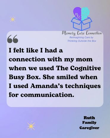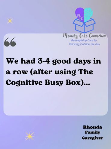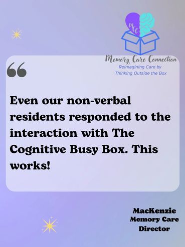 We aim to make The Cognitive Busy Box™ and The Cognitive Busy Blanket™ better options for families, senior living and senior in-home care to make a person-to-person connection with those living with dementia. We offer products that can be used along side pharmaceuticals as a comprehensive approach